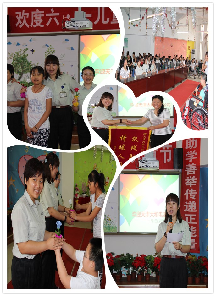 6月13日上午天津市大和电器有限公司工会一行四人来到西青区启智学校,开展了爱心捐赠活动,为启智学校的孩子们送上一份爱心。