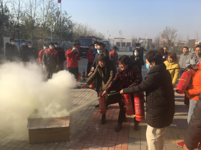 消防官兵向全体师生普及消防避险知识以及器械使用,并指导教师操作。