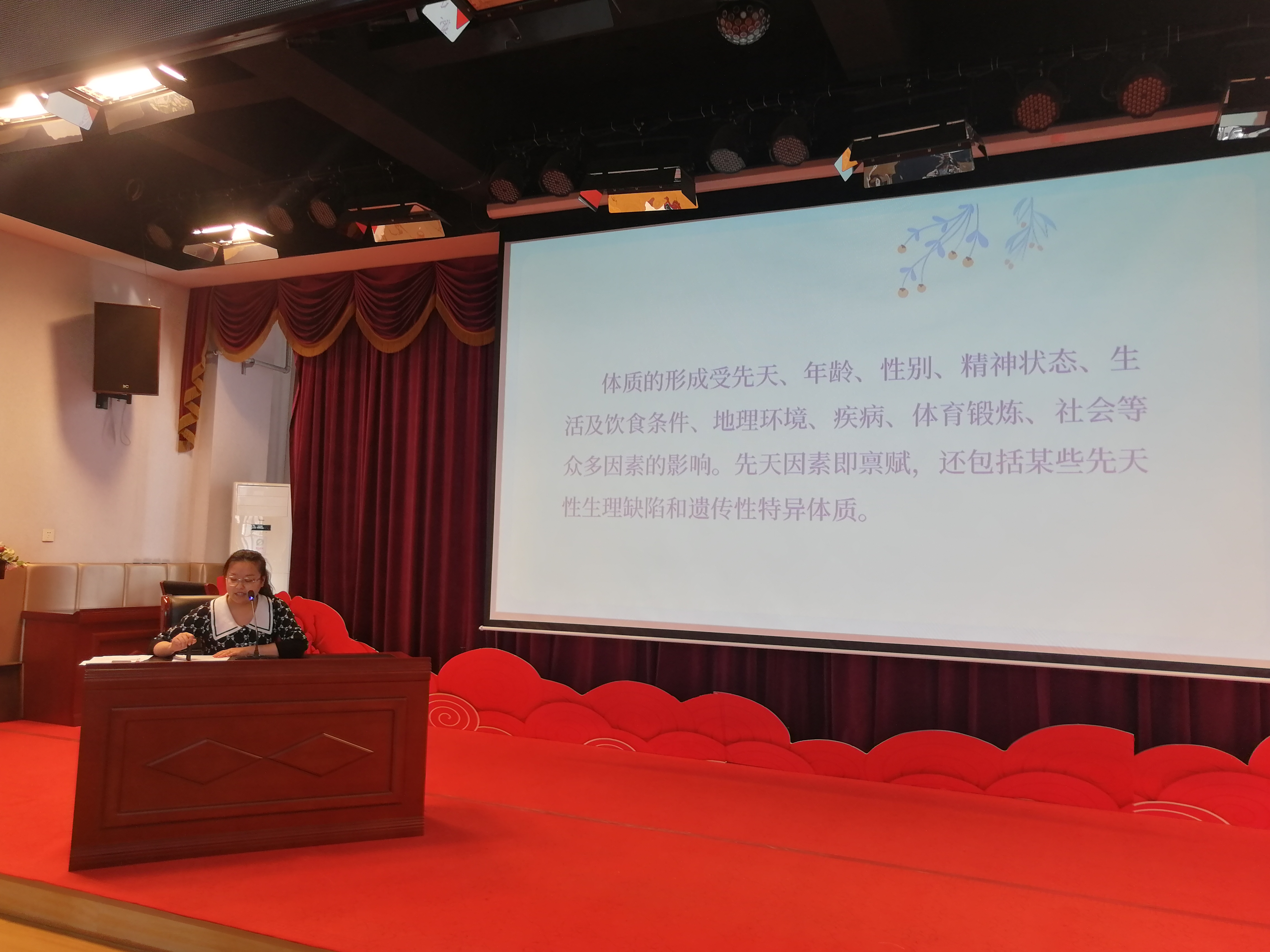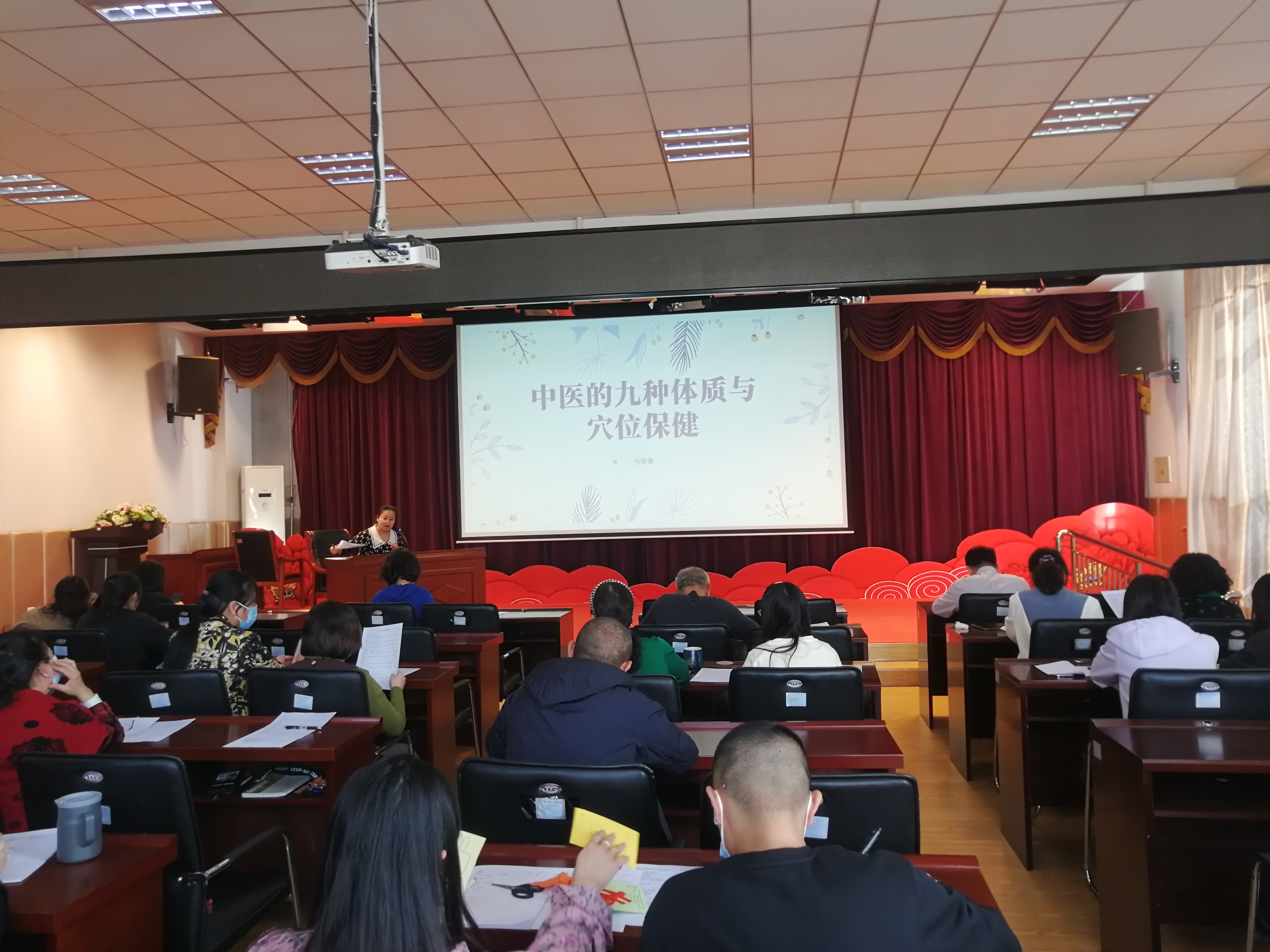 讲座前,为提高本次活动的针对性和实效性,提前一周下发了“中医体质分类与判定自测表”,教师们依据自身情况进行如实填写。讲座中,马大夫结合教职工体质分类重点讲解了九种不同体质的总体特征、形体特征、常见表现、心理特征、发病倾向、适应能力及调理方法等。讲座后,又下发“中医九种体质穴位保健要点”,方便老师们对中医穴位、保健知识有进一步的了解,提醒教师们关注自己的健康问题。