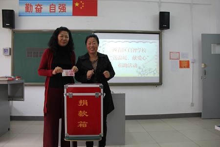 按照天津市民政局要求开展“送温暖、献爱心”捐助活动。面向甘肃、河北省承德过冬困难群众,定向捐助过冬的棉衣被。2015年11月4日我校领导组织全体教师开展“送温暖、献爱心”捐助活动,老师们都积极为困难群众献出自己的爱心捐款。营造“奉献爱心,回报社会”的浓厚氛围,让困难群众感受到党和政府的关怀,感受到社会主义大家庭的温暖。